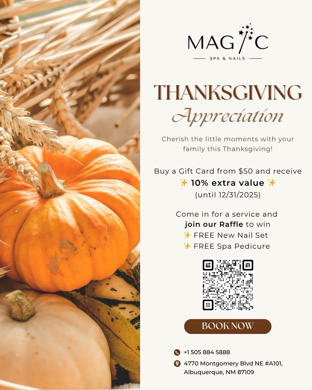 MAGIC SPA & NAILS is the IDEAL destination for nail services in the center of ALBUQUERQUE NM 87109. We are dedicated to bring TOP line products mixed with EXPERT technique to the nail salon industry and an AFFORDABLE price. Our specialties includes Nails, Pedicure, Manicures, Dipping Powder, Waxing, Facials and Eyelashes.
